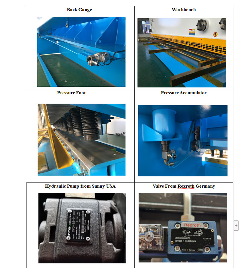 4. Рухома орбіта балок леза нахилена вперед до опорної поверхні нижнього леза, тому ви можете отримати тонку поверхню зсуву. Гвинти з домкратом верхнього леза забезпечують точне регулювання для мінімізації «ганчірки» або «задирок» на зрізаному краї матеріалу. Притискний вузол використовує пружини-метелики. На притискному пристрої притискної пластини є протиковзкий п’ятковий блок. Тиск більший, але він не пошкоджує поверхню листового металу.